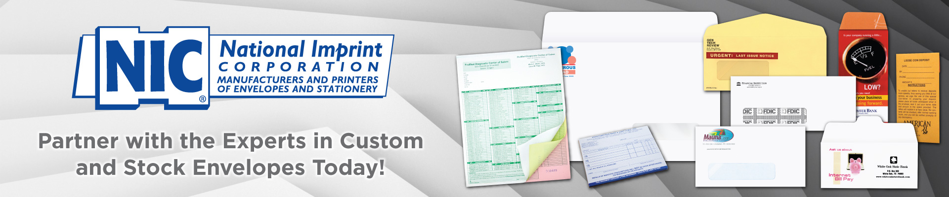Welcome to National Imprint We are pleased that you have chosen to visit our newly enhanced website and online ordering system. With over twenty years of experience and a commitment to the distributor marketplace, we believe we are your best source for any stock and custom envelopes and stationery products. We offer competitive pricing, free typesetting, fast turnaround and free freight on quantities of 5M or less. While visiting we hope that you will take advantage of the many features at this site including: